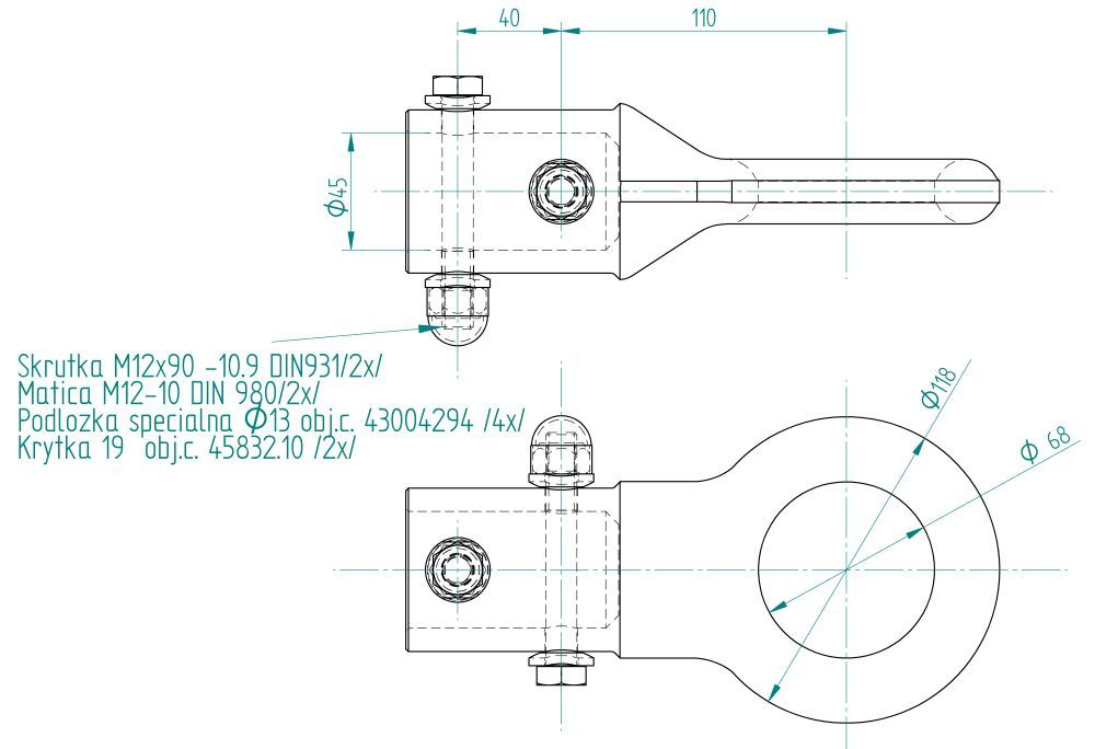 -Oko ťažné FR 68x25 O 45mm M12/M12 (sada)