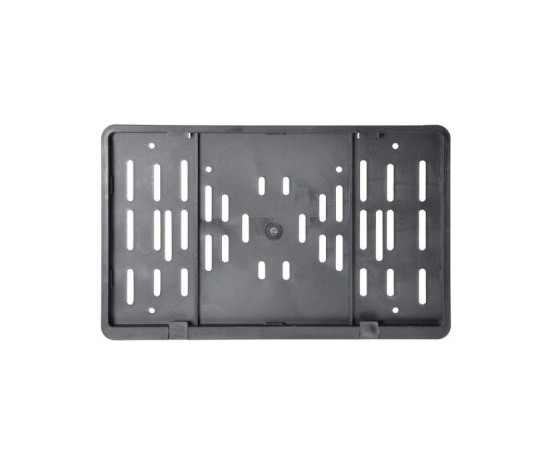 Podložka s pružného ohybného plastu pod štátnu poznávaciu značku alebo tabuľku registračnej značky, otvory pre univerzálnu montáž.