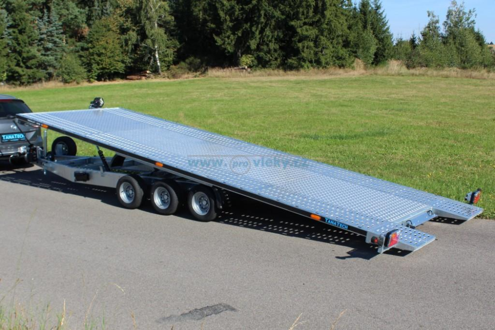 Otvorený prepravník automobilov Balhanger Optilift - rýchla nakládka a vykládka bez nájazdov. Hydraulicky sklopná korba. 3 nápravy vr. tlmičov. Prepravníky automobilov Balhanger ponúkajú vynikajúcu kvalitu, spoľahlivosť a moderný dizajn, ideálny pre profesionálne aj súkromné ??použitie. Vďaka svojej robustnej konštrukcii, vysoko kvalitným materiálom a chytrej funkčnosti sú ideálne na bezpečnú prepravu vozidiel. Skvelý pomer ceny a kvality: špičková kvalita za férové ??ceny.