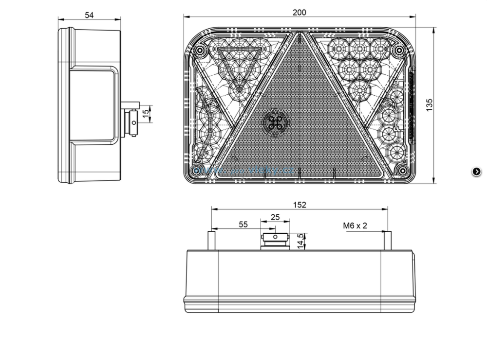 zadné multifunkčné svietidlo s reflexným trojuholníkom